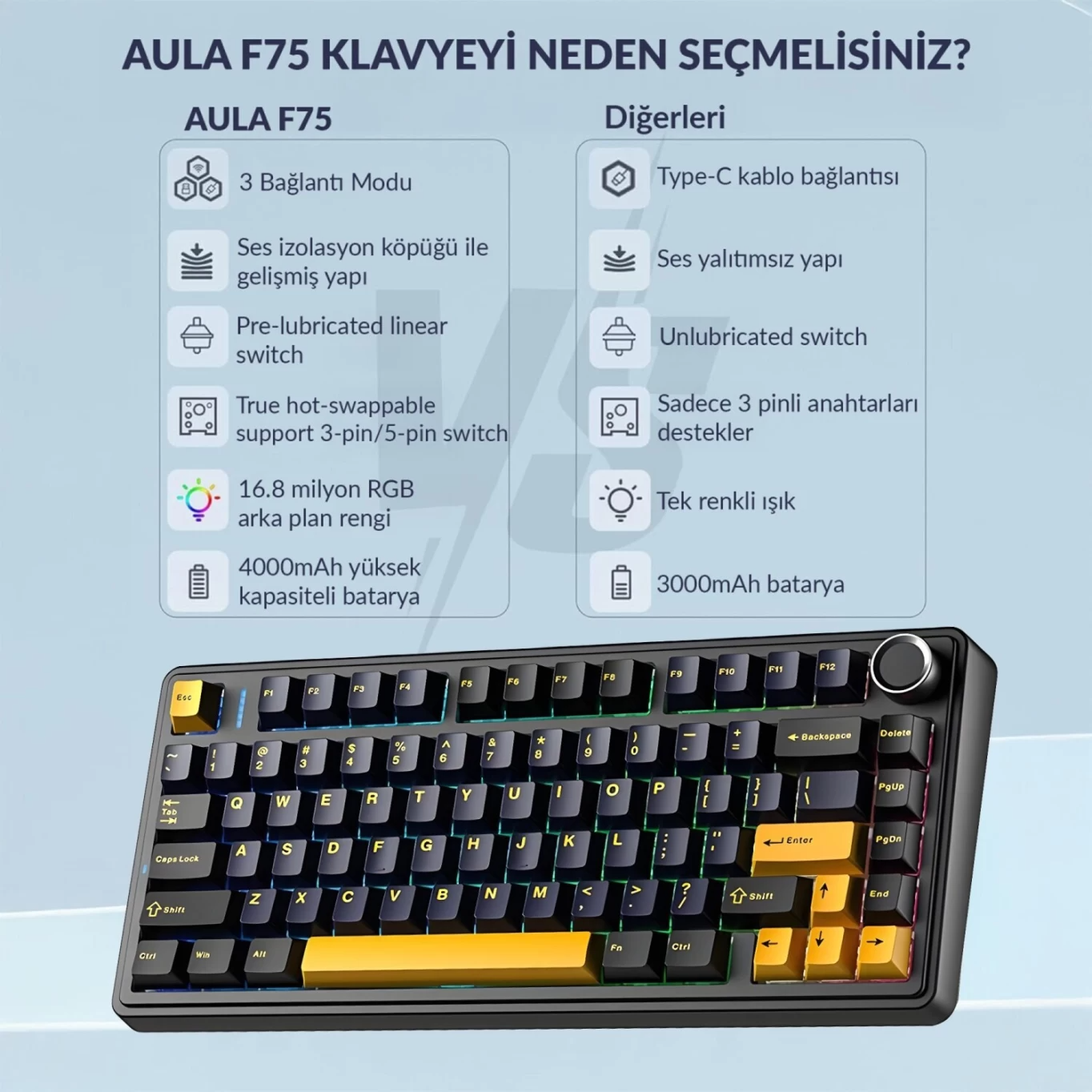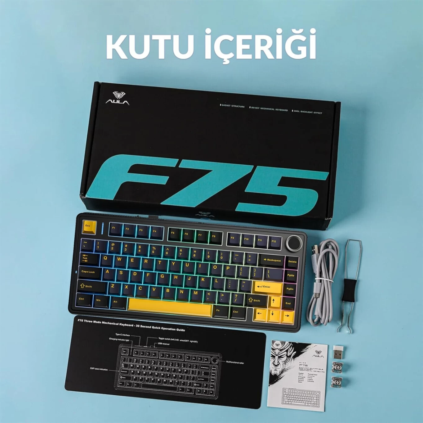 - 1 x Aula F75 Mekanik RGB TKL Reaper Switch Kablosuz Makrolu Hot Swap Klavye
