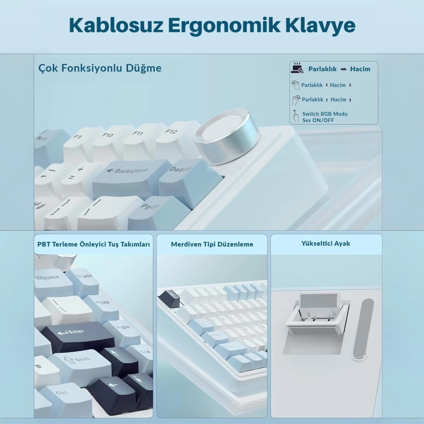 - Bağlantı Çeşitleri: Type-C Kablolu / 2.4GHz Kablosuz / Bluetooth
