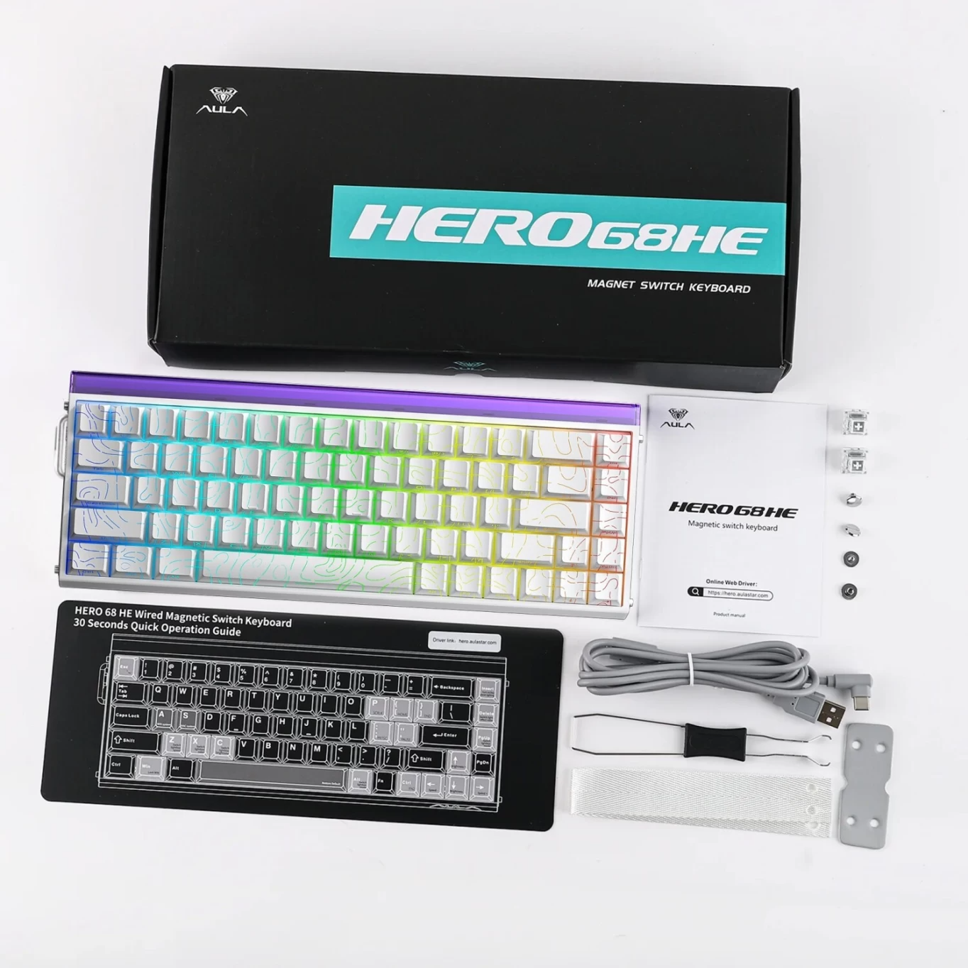 - 1 x Aula Hero68 He Manyetik Klavye Rapid Trigger Black King Switch 8000Hz RGB Neon TKL Hot Swap Oyuncu Klavyesi Beyaz